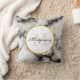 Une coussin avec une motif marbrée moderne et classe. Marbre blanc, noir et gris fumé avec de minces rubans de tourbillons en faux or dans tout le motif. Un cercle blanc avec un cadre en faux or superposé avec votre initiale monogramme et votre nom à l'intérieur.