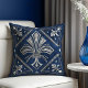 Coussin Marbre bleu et perle Art Déco Fleur de lis