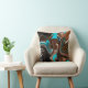 Bleu, Turquoise, Marbre noir art numérique fluide abstraits coussins modernes.