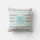 Coussin Mariage de monogramme blanc Chevron Grey Aqua