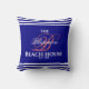 Elégante et élégante maison de plage familiale couleur marine, chalet ou toute maison de vacances monogramme décor de script jetez oreiller. monogramme couleur corail initial avec typographie blanche en gras. Il vous suffit d'utiliser la fonction "personnaliser ce modèle" pour insérer votre nom de famille, votre initiale et la date d'établissement.