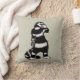coussin de chat déplaisant avec un dessin à l'encre représentant un étrange chaton rayé noir et blanc avec un long cou tenant un masque de crâne. Il semble qu'un de ses gants est sorti et sa main squelette montre de sa manche. Me demande si c'est bien plus une créature déplaisante qu'elle ne prétend être à Halloween.