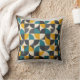 A stylish throw pillow featuring a bold mid-century modern geometric pattern in a chic color palette of teal, mustard yellow, and charcoal grey. Adds a contemporary and artistic touch to any living space.