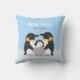 Personnalisez ce coussin avec l'illustration d'une famille de pingouins avec le bébé pingouin dans les bras de ses parents. Fait un élément décoratif mignon pour la crèche.