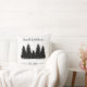 Minimal black and white throw pillow, featuring rustic pine trees. Personalize the design for your lake house cabin, vacation home, or Airbnb.