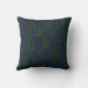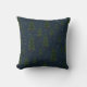 Add a calm winter touch to your home with this minimalist throw pillow featuring a repeating pine tree pattern on a deep blue background.