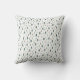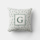 Monogrammed vacances lancer oreiller comprend votre monogramme de famille unique en vert chasseur, entouré d'un motif boisé rustique de minuscules illustrations de pins en vert chasseur, sauge et olivier sur un arrière - plan blanc.