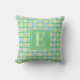 Modern checker pattern in pastel blue, green and lime turns this pillow into a unique artistic piece for your room. A green square on the front provides space for your monogram. Click on the personalize button to add your own initial. Use the pillow to brighten a sofa, layer on a bed or add a pop of color to your favorite reading chair. More than a decor, it’s a cozy detail that makes any room feel a little brighter and more personal. Thanks for viewing an Eria Daisy Art design!