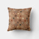 Jetez l'oreiller dans un motif moderne du milieu du siècle de sept points, surligné étoiles, dans les tons marron, taupe, beige et crème, sur un arrière - plan brun café moyen