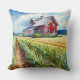 Cet oreiller à jetons est muni d'une aquarelle d'une grange à écran rouge entourée d'un champ de maïs. Un beau ciel bleu trône au-dessus. C'est le coussin idéal pour quiconque apprécie la beauté simpliste de la vie agricole.