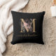 Décor moderne simple dans un monogramme noir et or avec floral rose vif transparent sur l'avant et le dos. Customisez facilement avec votre nom et vos initiales monographiques de votre choix.