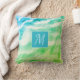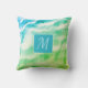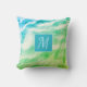 Personnalisez ce coussin abstrait abstrait vert et bleu avec votre monogramme. Le type peut être modifié en cliquant sur personnaliser ce modèle. Fun anniversaire, remise de diplômes ou cadeau de réchauffement de la maison.