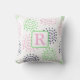 Coussin Monogramme aquarelle rose navy vert motif floral