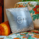 Coussin Monogramme argent et bleu clair