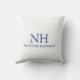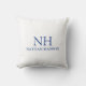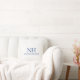 Un oreiller moderne conçu dans un style simple et minimaliste, bleu et blanc, avec votre monogramme en caractères gras et votre nom.