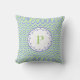 Chic, moderne "Monogram Lime and Lilac Throw Pilow" ajoute une touche spéciale à tout décor, de la maison, du bureau, de la chambre dortoir, vous le nommez.
