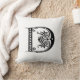 Coussin Monogramme D Modèle floral noir et blanc initial