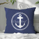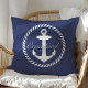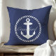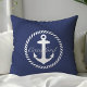 Coussin Monogramme d'Ancre marine bleu et blanc Preppy