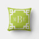 Coussin Monogramme de clé grecque verte et blanche d'Apple