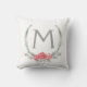 Customisez ce joli coussin avec votre monogramme pour une touche personnalisée à votre décor de vacances. Design dispose d'une couronne de laurier botanique verte avec des fleurs de vacances rouges et votre monogramme en gris. Magasinez les articles correspondants de notre collection Holiday Magic :