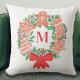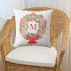 C'Est La Saison À Décorer ! Ajoutez ce charmant coussin à votre décor festif. Il est décoré d'une aquarelle de couronne de Noël de biscuits de Noël et de feuillage saisonnier. Vous pouvez le customiser avec votre initiale. Aquarelle originale © Michele Davies.