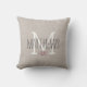 Coussin monogrammé personnalisé beige, noir et blanc avec nom de famille.