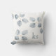 Ce coussin simple et élégant comporte un groupe simple d'eucalyptus d'aquarelle, sur un arrière - plan blanc propre pour un regard minimaliste renversant. Ajoutez vos initiales pour personnaliser. Le dos du coussin est une couleur de gris doux et bleu.