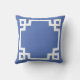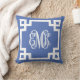 Coussin Monogramme de script de clé grecque bleu et blanc