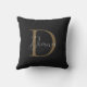 Coussin Monogramme de script d'or Mossy Noir moderne de mi