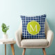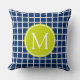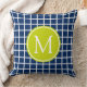 Coussin Monogramme de trellis de bleu marine et de vert de