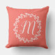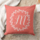 Superbe oreiller à lancer rose corail avec une lettre monogramme personnalisable dans une belle et délicate couronne. Couleur de l'année pour 2019 !