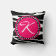 Cette conception moderne superbe est parfaite pour ajouter une éclaboussure de couleur et d'amusement à votre pièce de dortoir de salon, de chambre familiale, de chambre à coucher ou d'université ! Les caractéristiques de conception un zèbre noir et blanc barre le motif de poster de animal. Au centre est un cercle de roses indien avec l'équilibre noir et le pois blanc. À l'intérieur du cercle est un endroit à customiser avec votre initiale dans la police blanche de manuscrit. Le verso du coussin est noir solide. Les rayures de zèbre et le carreau de monogramme d'initiale de cercle de roses indien font un grand cadeau pour des anniversaires, des obtentions du diplôme, des pendaisons de crémaillère, etc.