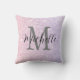 Coussin Monogramme et nom de la fille violet rose brillant