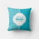 Coussin Monogramme et nom de l'Houndstooth turquoise moder