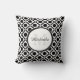 Coussin Monogramme et nom géométrique noir et blanc modern