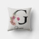 Coussin Monogramme G initial floral rose boho