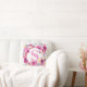 Coussin Monogramme Initiale de Nom en Aquarelle Fleur Rose