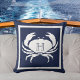 Coussin Monogramme Marine Bleu Crabe Blanc Nautique