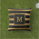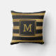 Coussin Monogramme moderne de rayures de noir et d'or de
