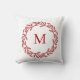 Coussin Monogramme moderne Feuille rouge initiale et couro