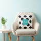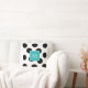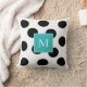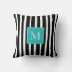 Points noirs modernes, rayures noires sur le coussin blanc, style scandinave, monogramme turquoise, coussin.