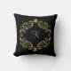 Monogramme ce beau motif damassé noir et or pailleté (pas de véritables paillettes) coussin décoratif. Ajoutez votre initiale. Idée cadeau formidable.