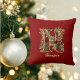 Coussin Monogramme Orné Personnalisé H Noel Rouge Or