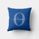 Coussin Monogramme personnalisé Nom du script Bleu Blanc