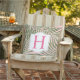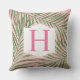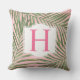 Le design coussin de style tropical présente un motif en feuilles de palmier vert de frondes en couches avec arrière - plan rose clair. Le cadre décoratif blanc a un monogramme familial initial en rose vif (peut être customisé) que vous pouvez personnaliser avec votre nom initial.