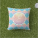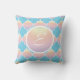 Coussin Monogramme Turquoise Et Pastel Quatrefoil