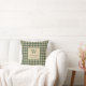 Monogramme ce coussin de lancer à carreaux buffle vert et marron/beige avec votre initiale et votre nom de famille. Vous pouvez ajouter n'importe quel texte en bas. Fait un excellent cadeau de mariage, cadeau de douche de mariée, ou achetez-les pour votre maison.
