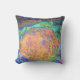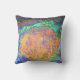 Cet oreiller abstrait à lancer dispose d'un motif en mosaïque brillante qui capture la couleur unique et le motif d'une coquille d'ormeau poli. Les spirales colorées orange, turquoise et violette vibrantes qui entourent le centre de cette photo ont été présentées à la fois à l'avant et à l'arrière de ce coussin. Photo originale - C. McGouldrick