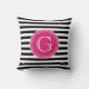 Un motif à la mode, moderne, géométrique, rayé en noir et blanc avec un modèle monogramme inspiré de la dentelle rose chaud.