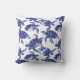 Cet oreiller à thème côtier présente un motif bleu et blanc de tortues.